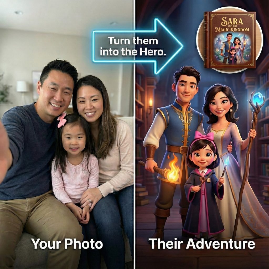 StoryGenie is a personalized children’s book platform that transforms a short parent quiz into a fully illustrated, AI-generated storybook where the child becomes the hero. Parents can upload a photo of their child, and the AI converts them into an illustrated character that stays consistent across all ten pages. Beyond the main character, parents can add the whole family, friends, and even favorite toys into the story, making each book a true reflection of the child’s world.